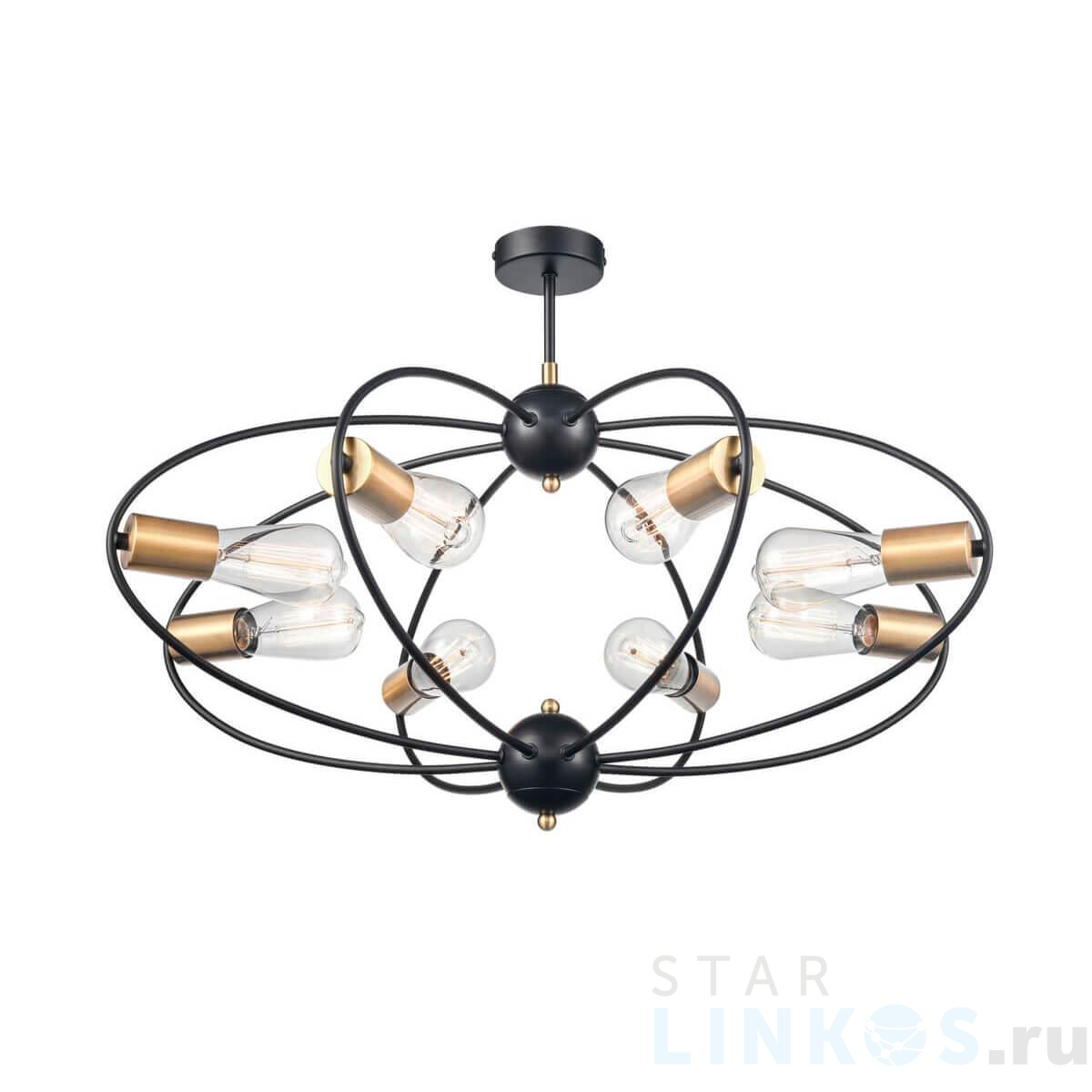 Поставщик рекомендует использовать лампы накаливания с цоколем E27 для освещения площади 14 м2. Потолочный светильник Vele Luce Crea VL6522L08 в стиле лофт используется в интерьере гостиной с установкой на потолок.