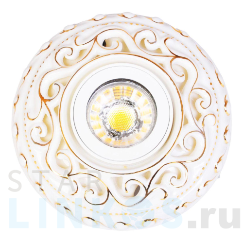 Поставщик рекомендует использовать лампы накаливания с цоколем GU10 для освещения площади 3 м2. Встраиваемый светильник Abrasax 4003 в стиле прованс используется с установкой врезной.