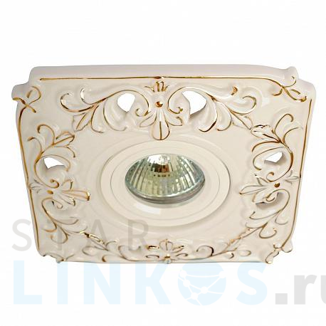 Поставщик рекомендует использовать лампы накаливания с цоколем GU10 для освещения площади 3 м2. Встраиваемый светильник Abrasax 4007 в классическом стиле используется с установкой врезной.