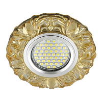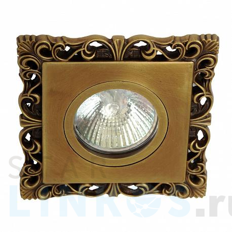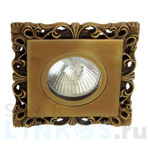 Поставщик рекомендует использовать лампы накаливания с цоколем GU10 для освещения площади 3 м2. Встраиваемый светильник Abrasax 5009-BR в классическом стиле используется с установкой врезной.