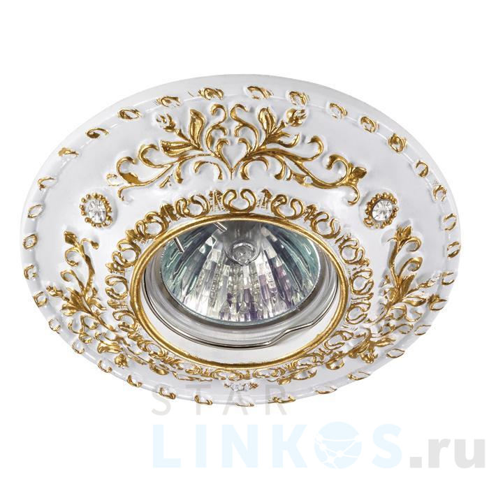 Встраиваемый светильник Novotech Spot Pattern 370093 в классическом стиле используется в интерьере гостиной с установкой на потолок.
