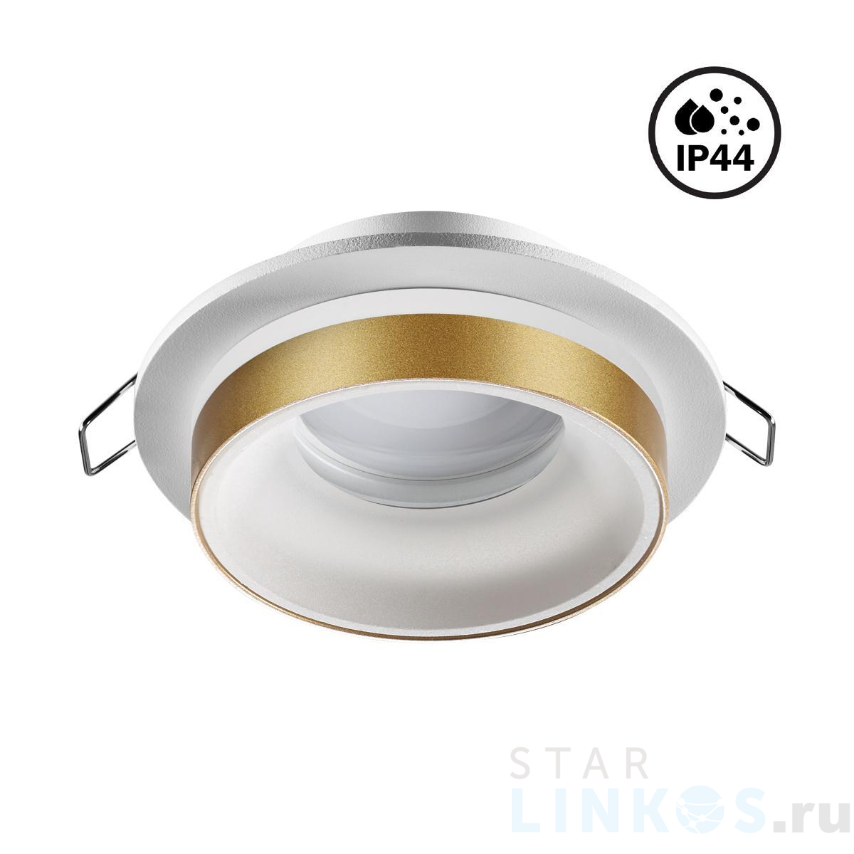 Встраиваемый светильник Novotech Spot Water 370783 в современном стиле используется в интерьере ванной с установкой на потолок.