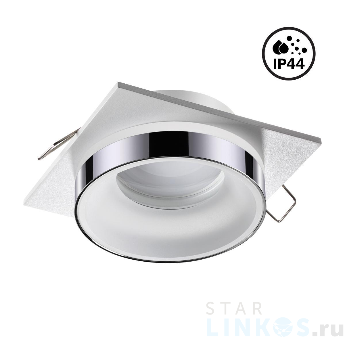 Встраиваемый светильник Novotech Spot Water 370786 в современном стиле используется в интерьере ванной с установкой на потолок.