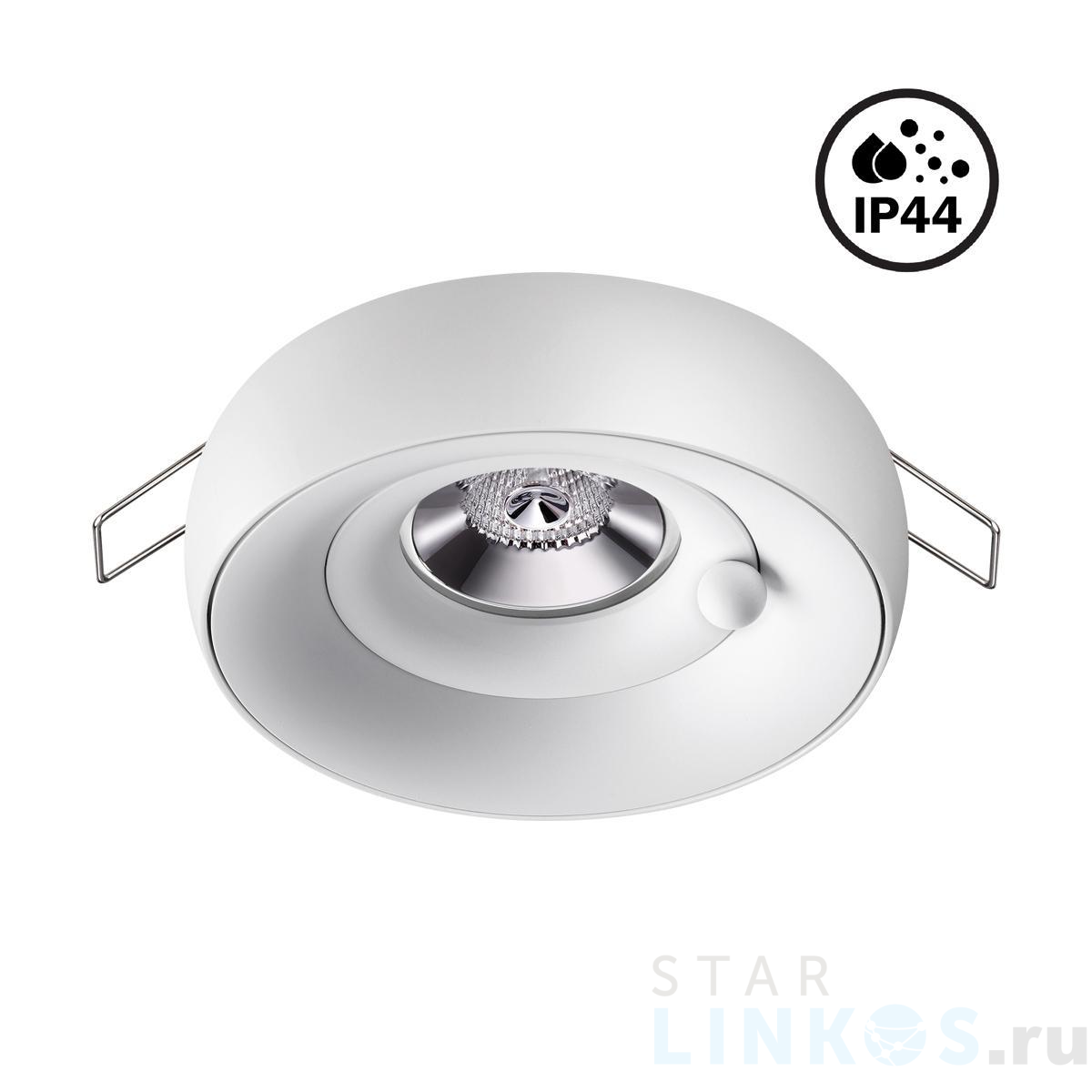 Встраиваемый светильник Novotech Spot Water 370797 в современном стиле используется в интерьере ванной с установкой на потолок.