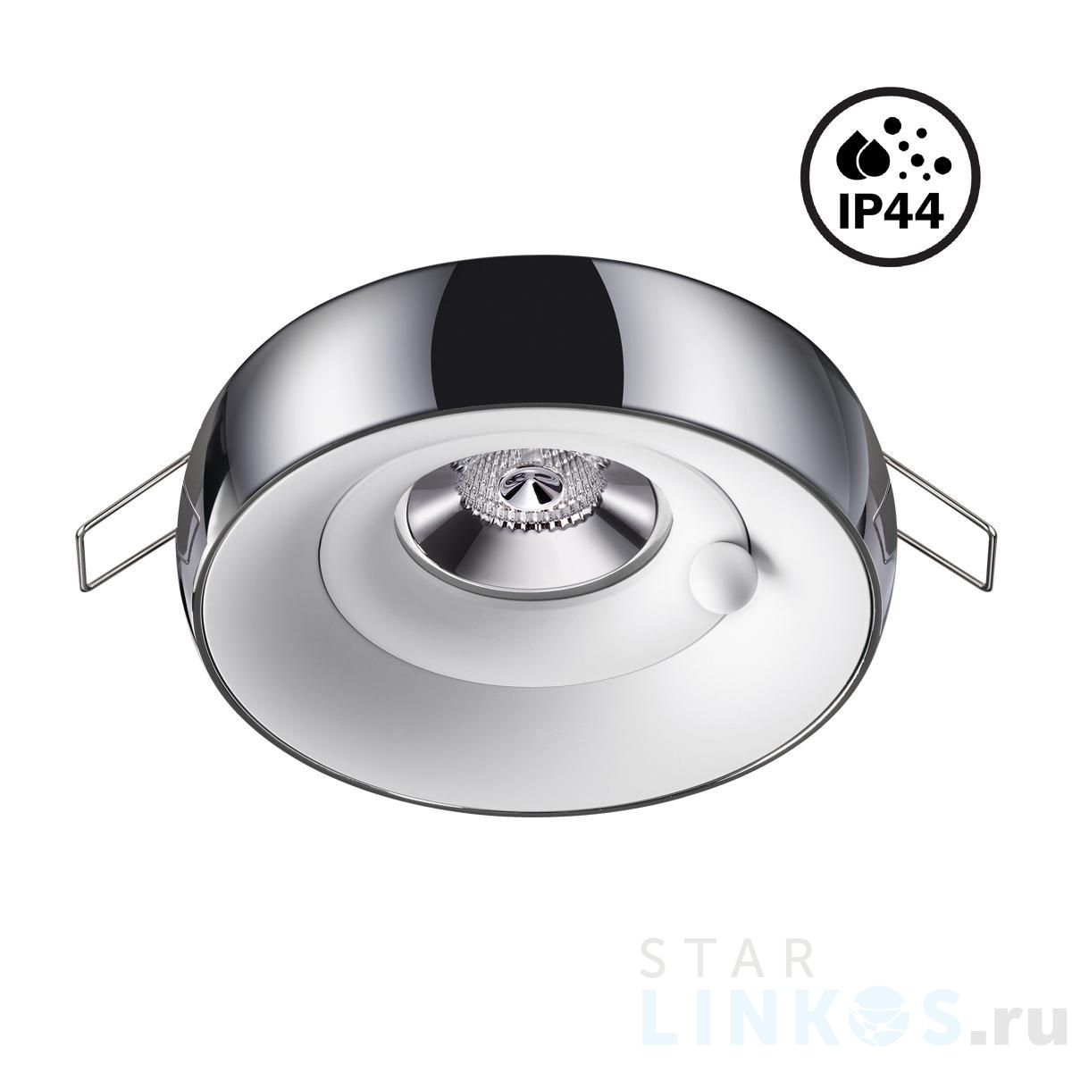 Встраиваемый светильник Novotech Spot Water 370799 в современном стиле используется в интерьере ванной с установкой на потолок.
