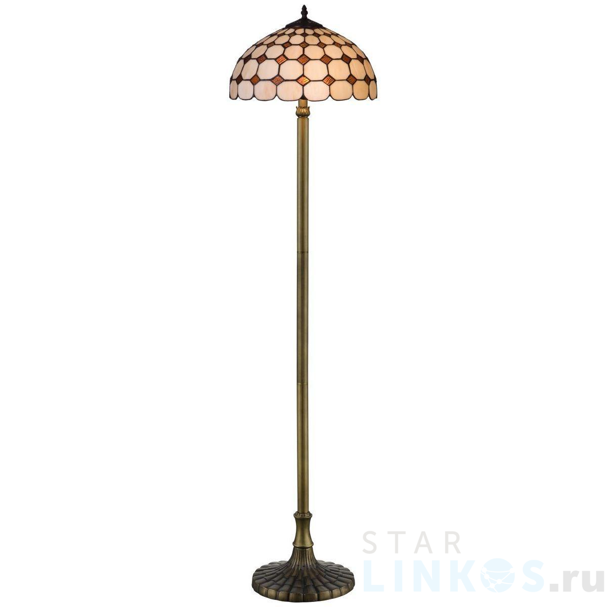 Поставщик рекомендует использовать лампы накаливания с цоколем E27 для освещения площади 6,7 м2. Торшер Velante 812-805-02 в стиле Тиффани используется в интерьере кухни с установкой на пол.