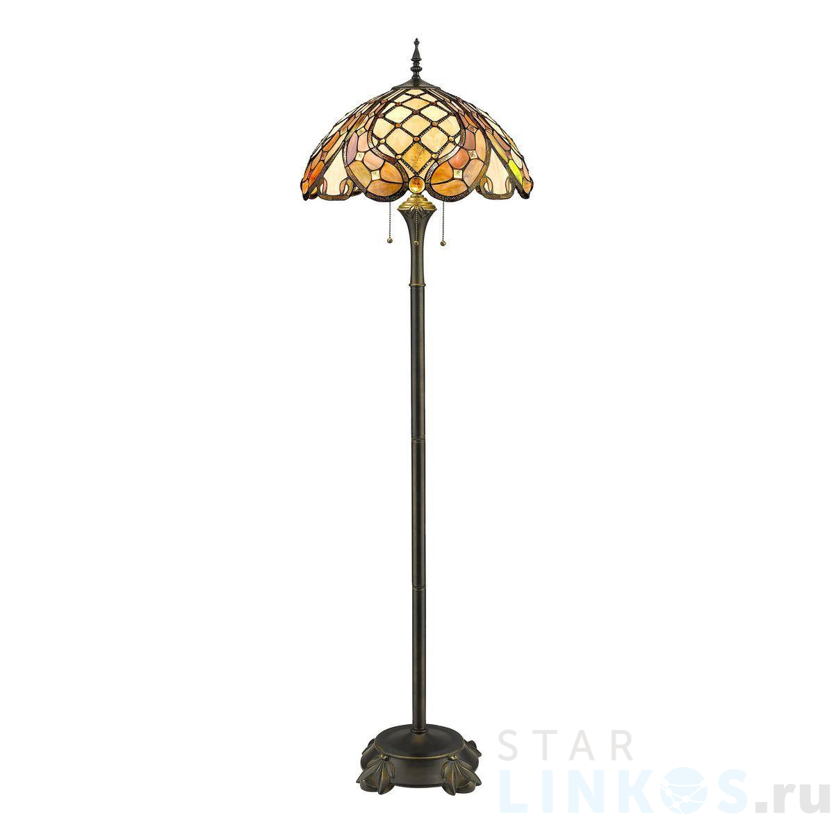 Поставщик рекомендует использовать лампы накаливания с цоколем E27 для освещения площади 9 м2. Торшер Velante 865-805-03 в стиле Тиффани используется в интерьере гостиной с установкой на пол.