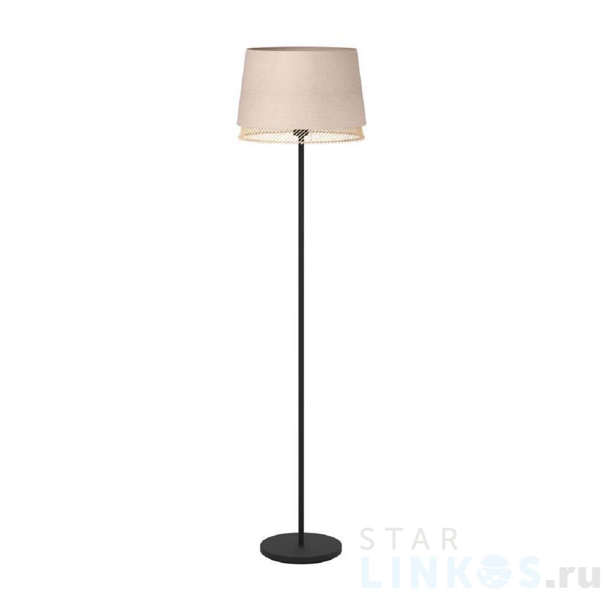 Поставщик рекомендует использовать лампы накаливания с цоколем E27. Торшер Eglo Tabley 43978 в кантри-стиле используется в интерьере спальни с установкой на пол.