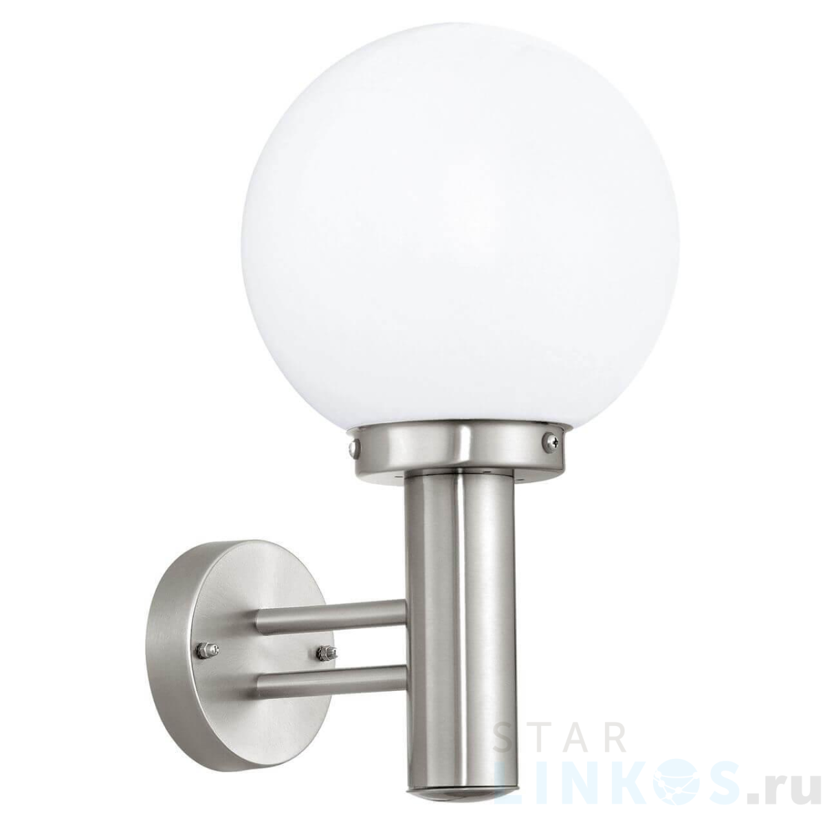 Поставщик рекомендует использовать лампы накаливания с цоколем E27 для освещения площади 3,3 м2. Уличный настенный светильник Eglo Nisia 30205 в современном стиле используется с установкой на стену.