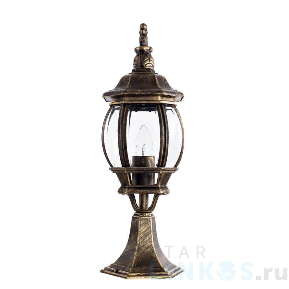 Поставщик рекомендует использовать лампы накаливания с цоколем E27 для освещения площади 4,2 м2. Уличный светильник Arte Lamp Atlanta A1044FN-1BN в замковом стиле используется с установкой на пол.