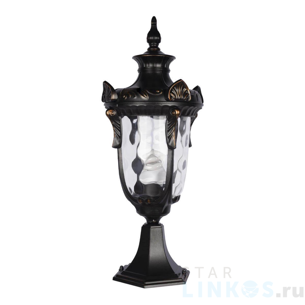 Поставщик рекомендует использовать лампы накаливания с цоколем E27. Уличный светильник Loft IT Marbella 100002/490 в классическом стиле используется с установкой на пол.