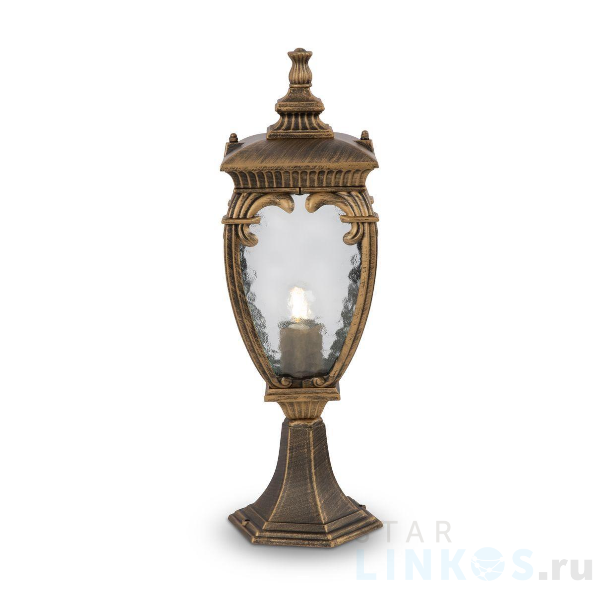 Поставщик рекомендует использовать лампы накаливания с цоколем E27. Уличный светильник Maytoni Fleur O414FL-01GB в классическом стиле используется с установкой на пол.