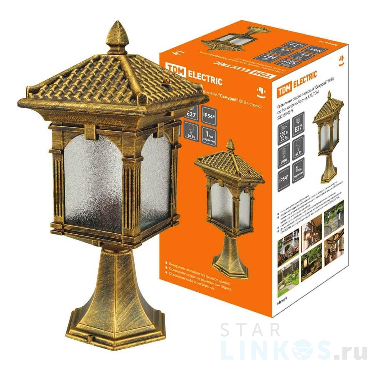 Поставщик рекомендует использовать лампы накаливания с цоколем E27. Уличный светильник TDM Electric Самурай SQ0330-0078 в классическом стиле используется с установкой на пол.