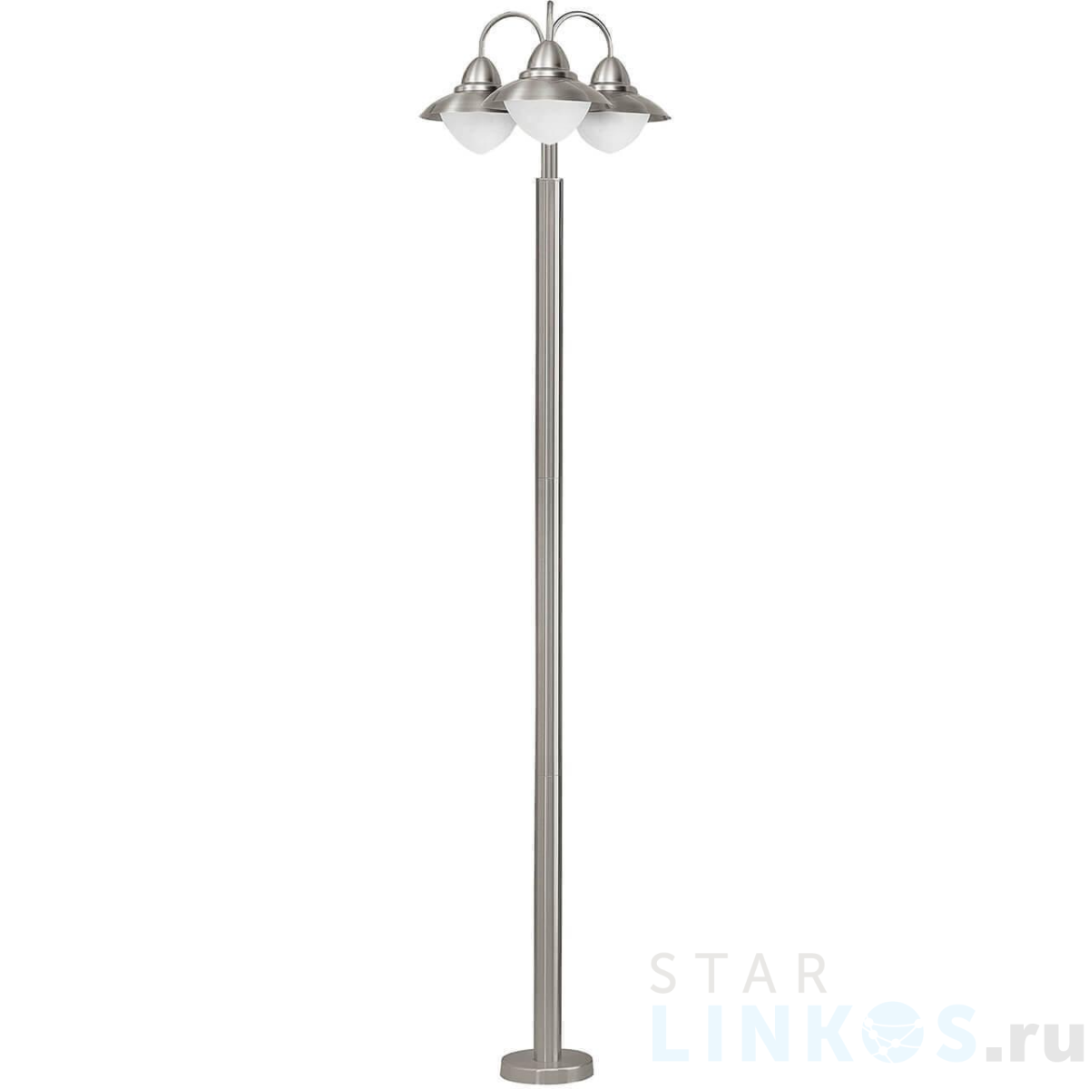 Поставщик рекомендует использовать лампы накаливания с цоколем E27 для освещения площади 10 м2. Садово-парковый светильник Eglo Sindey 83971 в используется с установкой на пол.