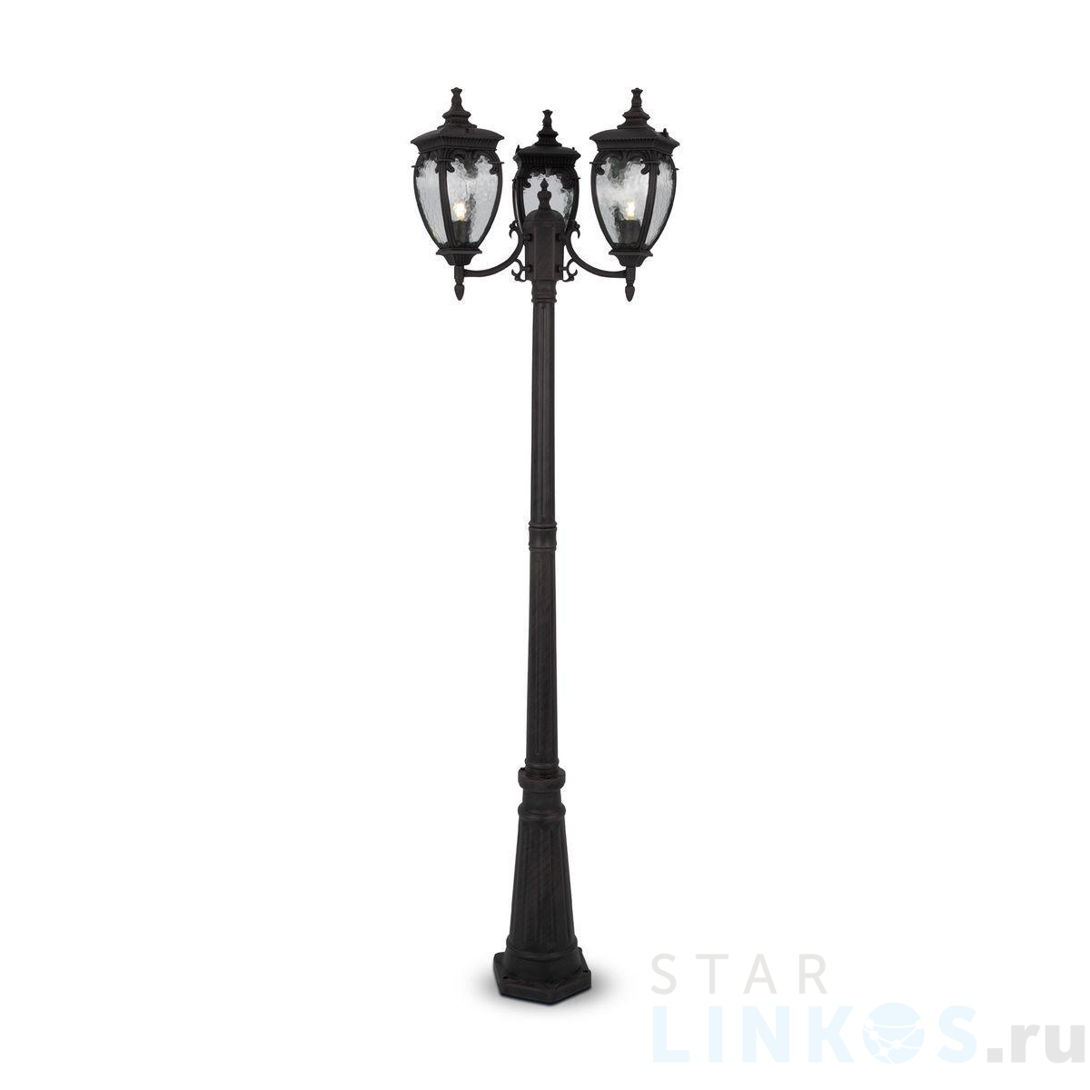Поставщик рекомендует использовать лампы накаливания с цоколем E27. Садово-парковый светильник Maytoni Fleur O414FL-03BZ в классическом стиле используется с установкой на пол.