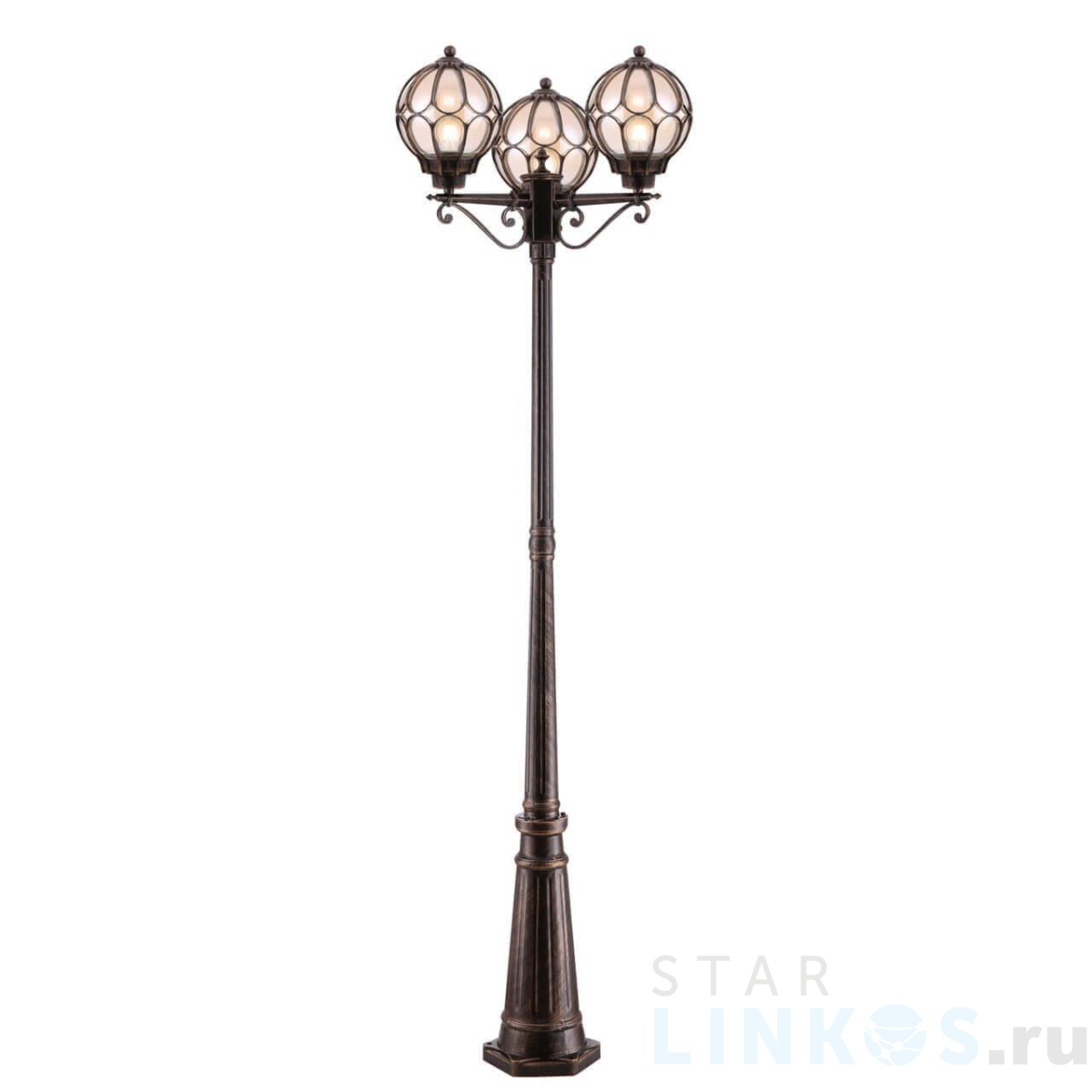 Поставщик рекомендует использовать лампы накаливания с цоколем E27. Садово-парковый светильник Maytoni Via O023FL-03G в восточном стиле используется с установкой на пол.