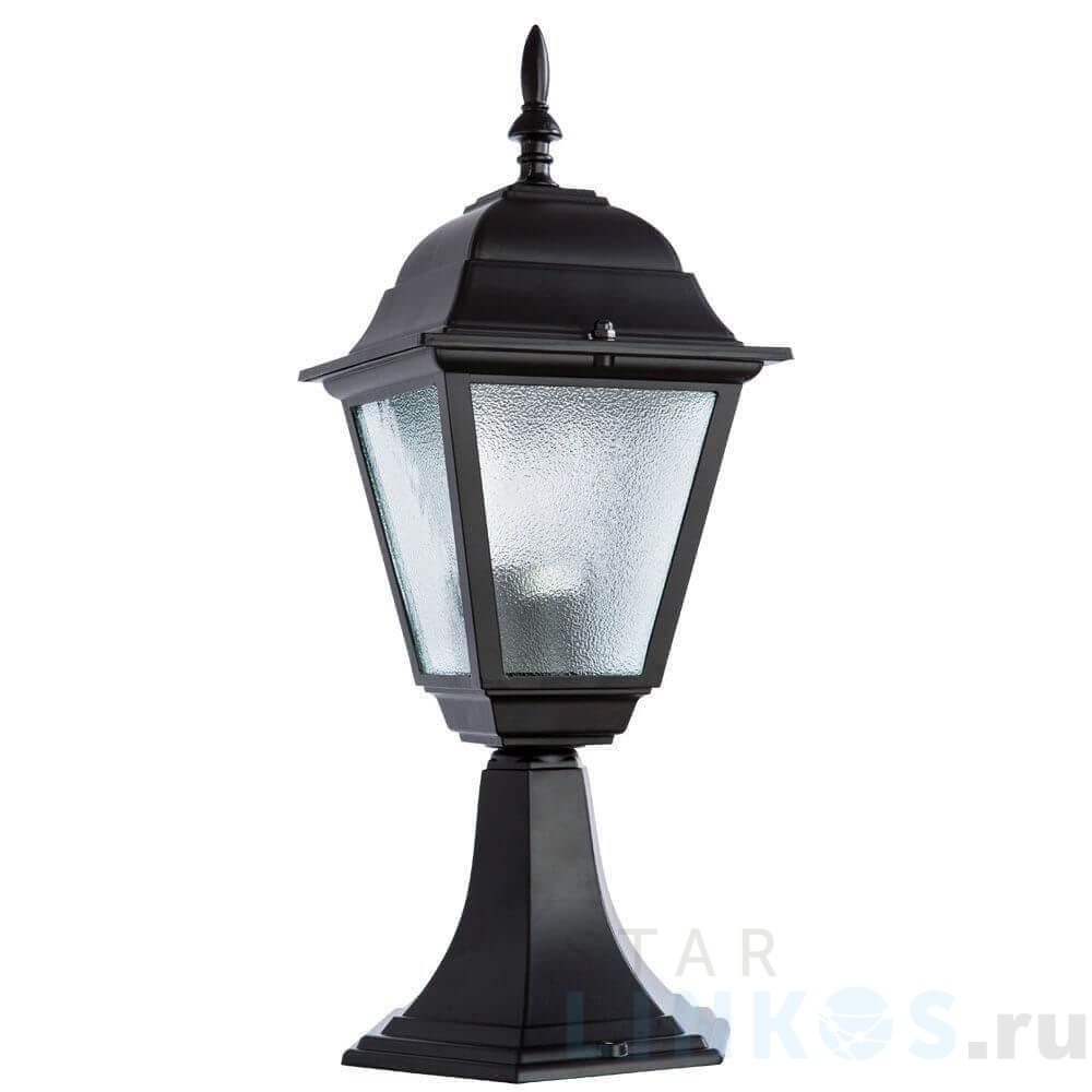 Поставщик рекомендует использовать лампы накаливания с цоколем E27 для освещения площади 3,3 м2. Уличный светильник Arte Lamp Bremen A1014FN-1BK в замковом стиле используется с установкой на пол.