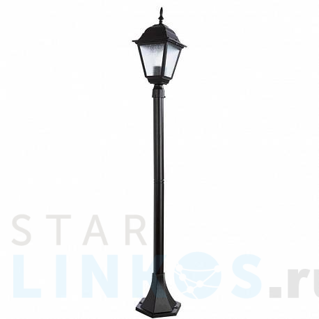 Поставщик рекомендует использовать лампы накаливания с цоколем E27 для освещения площади 3,3 м2. Уличный светильник Arte Lamp Bremen A1016PA-1BK в замковом стиле используется с установкой на пол.