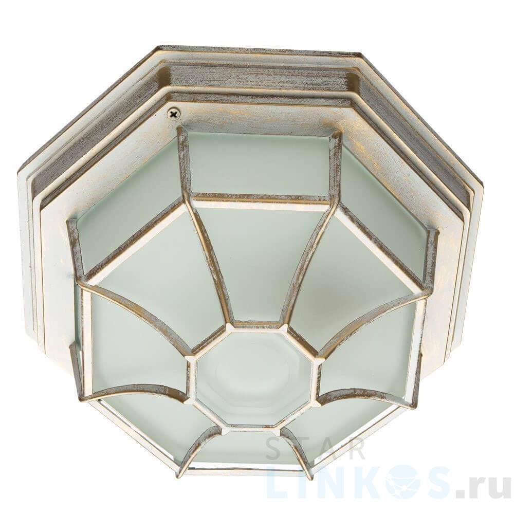 Поставщик рекомендует использовать лампы накаливания с цоколем E27 для освещения площади 3,3 м2. Уличный светильник Arte Lamp Pegasus A3121PF-1WG в кантри-стиле используется с установкой на потолок.