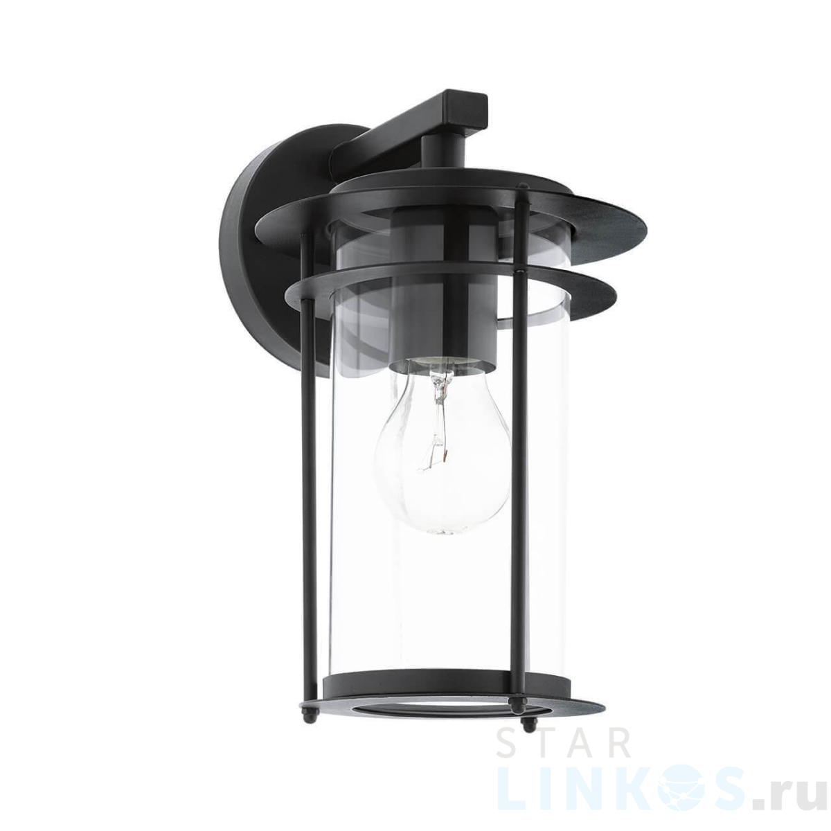 Поставщик рекомендует использовать лампы накаливания с цоколем E27 для освещения площади 3,3 м2. Уличный настенный светильник Eglo Valdeo 96239 в стиле лофт используется с установкой на стену.