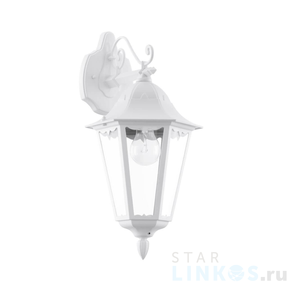 Поставщик рекомендует использовать лампы накаливания с цоколем E27 для освещения площади 3,3 м2. Уличный настенный светильник Eglo Navedo 93445 в стиле прованс используется с установкой на стену.