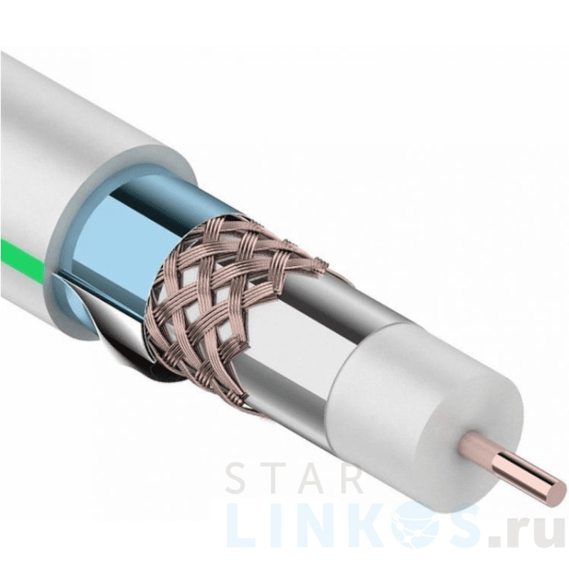Коаксиальный кабель RG-6U+Cu, 75 Ом, до 1 ГГц, одножильный, тройной экран MASTER — две фольги, Cu/Al/Cu/Al (1.0/Al/64×0.12 мм — 90%/Al), наружный диаметр 6.8 мм, ПВХ, белый (Orange Line), 100 м.