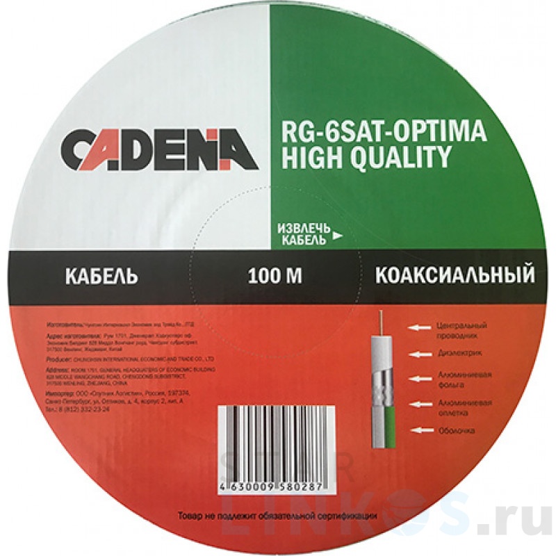 Кабель коаксиальный RG-6SAT-Optima высокого качества CADENA белый