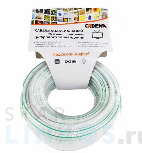 Купить с доставкой Кабель коаксиальный RG6 для подключения цифрового телевидения CADENA, белый, 15 м в Туле