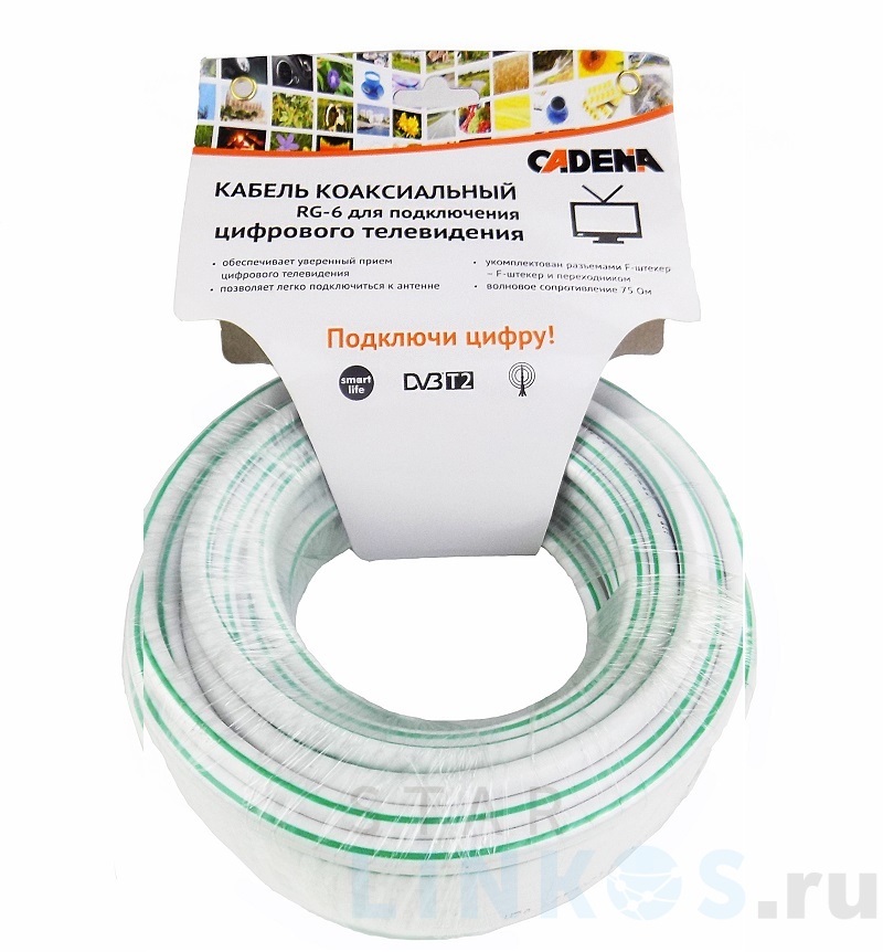 Кабель коаксиальный RG6 для подключения цифрового телевидения CADENA, белый, 15 м