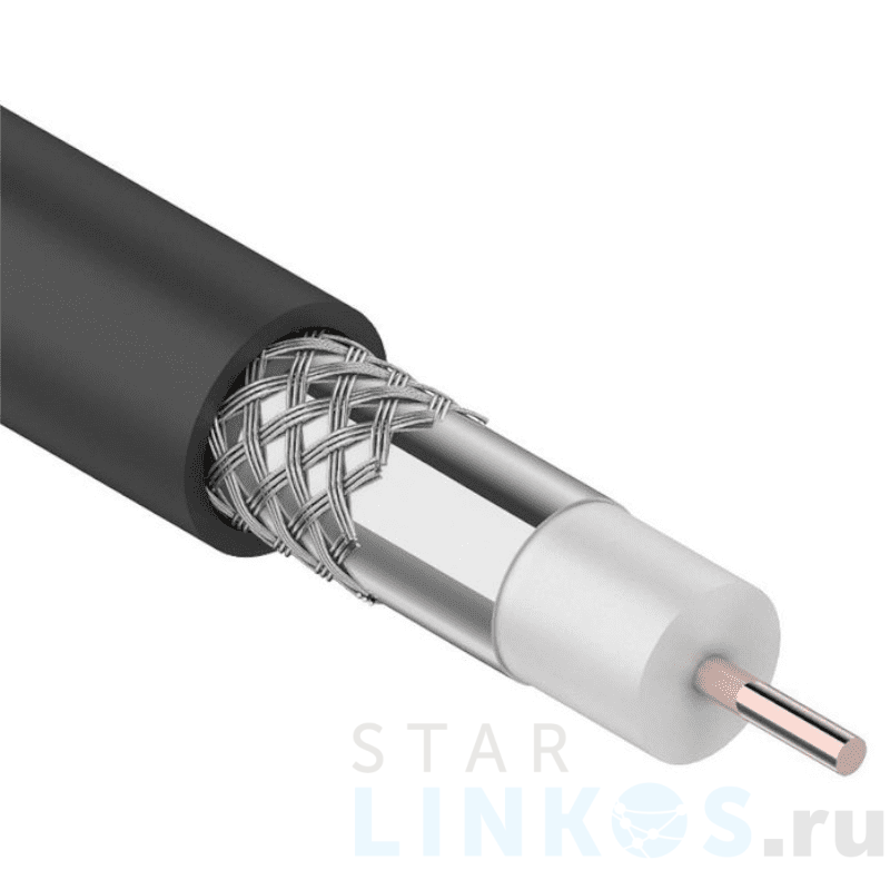 Коаксиальный кабель RG-6U, 75 Ом, Ø6.8 мм, до 1 ГГц, одножильный, CCS(омедненная сталь)/Al/Al (1.02/Al/48×0.12 мм — 64 %), полиэтилен, черный, наружный (Outdoor), 305 м.