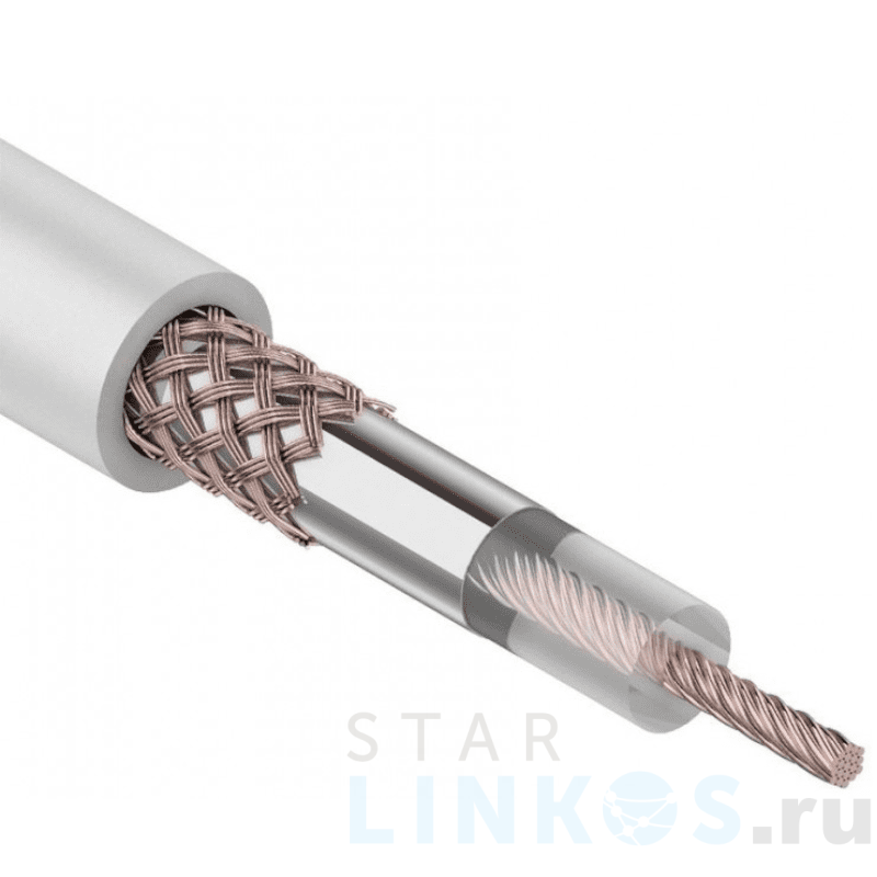 Коаксиальный кабель RG-58 A/U, 50 Ом, многопроволочный, Cu/Al/Cu (19×0.12 мм/Al/48×0.12 мм — 64 %), Ø5 мм, ПВХ, белый, 100 м.