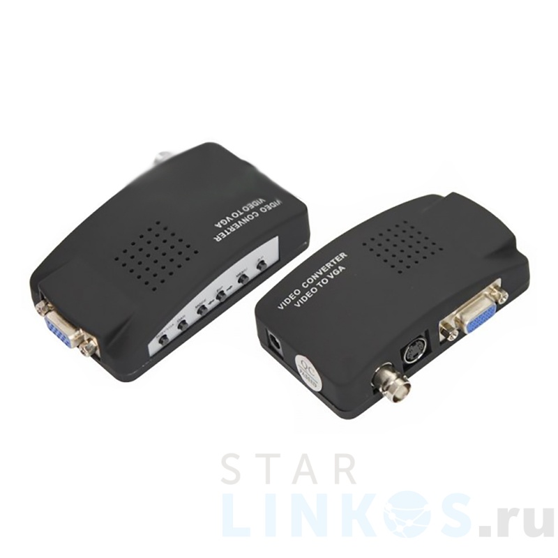 Конвертер BNC + S-video на VGA REXANT позволяет пользователям конвертировать видеосигнал BNC и S-video в сигнал VGA. Это дает возможность использовать стандартный монитор с выходом VGA / SVGA для просмотра видеосигнала BNC или S-video. Это идеальное решение для устройств вывода BNC видеосигналов, таких как камеры слежения, DVR наблюдения и видеопроцессоров. Конвертер питается от сети, через блок питания ( поставляется в комплекте с изделием).