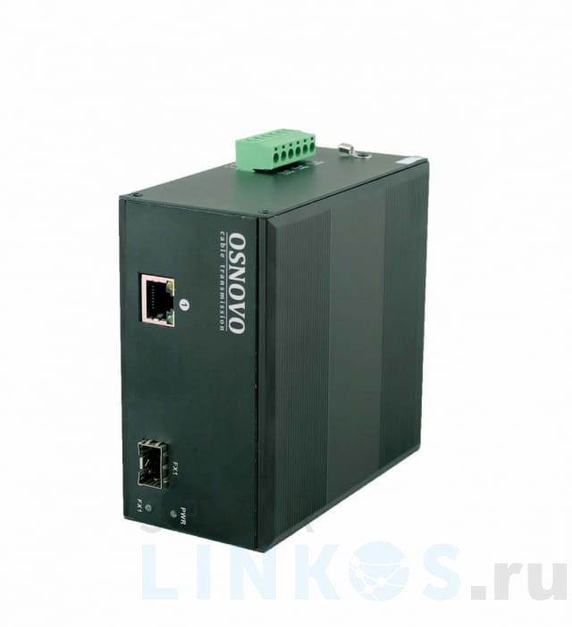 Медиаконвертер Osnovo OMC-1000-11X/I трансформирует Ethernet-сигналы в сигналы стандарта 1000BASE-X (SFP-модули) и транслирует по волоконно-оптическому кабелю со скоростью 1 Гбит/с. Оснащен портом RJ-45 для подключения IP-устройств и SFP-слотом для установки SFP-модуля (не входит в комплект). Максимальная дальность передачи достигает 100 км и зависит от SFP-модуля. Характеристики: Автоматическое определение MDI/MDIX, работа с обычными и кроссовыми кабелями. Размер таблицы MAC адресов — 8К. Способ передачи данных — дуплекс, полудуплекс. Буфер пакетов — 2 Мбайт. OMC-1000-11X/I рассчитан на работу в помещениях, в том числе неотапливаемых: диапазон рабочих температур — -40 ºС… +85 ºС, корпус соответствует стандарту защиты оболочек от пыли и влаги IP40. Предусмотрена грозозащита, защита от переполюсовки по входу питания, безвентиляторное конвекционное охлаждение. Медиаконвертер оборудован LED-индикаторами Ethernet, наличия питания и линка через SFP (активности порта), клеммой для заземления корпуса, клеммной колодкой 6 pin для подключения адаптера (в комплект не входит). Питание — DC 12 ~ 36 В, вход для подключения резервного питания от второго БП. Потребляемая мощность — до 5 Вт. Допустим монтаж на стену или DIN-рейку (защелка на DIN-рейку в комплекте). Габариты — 116×60×112 мм.