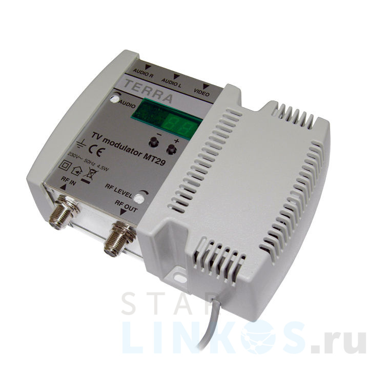 ТВ модулятор Terra MT 29 используется для преобразования сигнала из низкой частоты в высокую как в дециметровом диапазоне, так и в метровом с 1 по 69 канал. Модулятор Terra MT 29 широко применяется в спутниковом телевидении, со спутниковыми ресиверами, у которых отсутствует ВЧ выход для подключения нескольких телевизоров (зависимый просмотр).