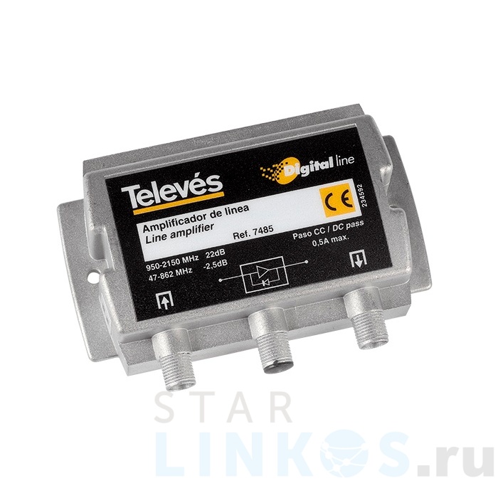 Усилитель TELEVES #43972 предназначен для усиления эфирного ТВ сигнала и распределения его по домашней сети. Усилитель изготовлен в оригинальном корпусе с полной экранировкой. Усилитель обеспечивает усиления эфирного сигнала от телевизионной антенны. Усилитель имеет один мощный выход и один контрольный выход.