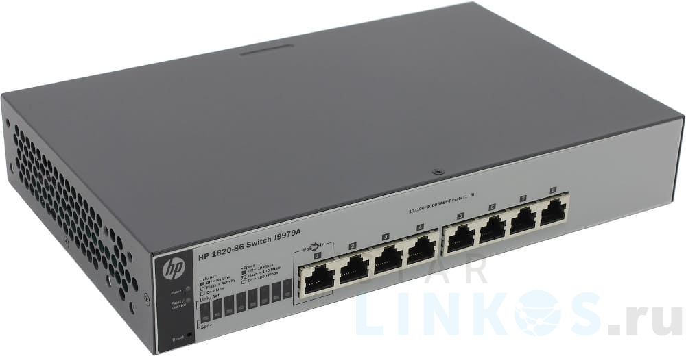 Управляемый коммутатор HPE OfficeConnect J9979A основан на процессоре ARM Cortex-A9 с тактовой частотой 400 МГц, оборудован восемью GE-портами RJ-45. Пропускная способность коммутационной матрицы — 16 Гбит/с. Скорость перенаправления пакетов — 11.9 mpps. Флеш-память — 16 Мбайт, буфер памяти пакетов — 1.5 Мбайт, ОЗУ — 128 Мбайт. Размер таблицы МАС-адресов — 8К. Задержка передачи кадра на 100 Мбит/с — Коммутатор готов к работе по принципу plug-and-play (режим клиента DHCP по умолчанию), доступна сетевая настройка через графический веб-интерфейс (GUI). Функции сетевого управления: Защита данных при управлении через веб-интерфейс шифрованием с передачей данных поверх криптографических протоколов (расширенный протокол HTTPS). SNMPv1/v2c — аутентификация подключаемых устройств. Поддержка IEEE 802.1AB. IGMP Snooping — контроль сетевого трафика, фильтрация многоадресной рассылки по подписчикам вместо лавинной рассылки на все порты. Поддержка до 64 виртуальных локальных сетей на основе портов. Поддержка резервного копирования ПО (Dual flash images). J9979A обеспечивает высокий уровень безопасности за счет только авторизованного доступа к интерфейсу веб-браузера, шифрования данных, отслеживания и блокировки девяти типов вредоносных атак. Качественную передачу аудио- и видеофайлов обеспечивает технология приоритизации трафика QoS на основе классификации DSCP или IEEE 802.1p (8 аппаратных очередей) и в сочетании с голосовым VLAN. Контроль трансляции ограничивает скорость широковещательного сетевого трафика. Поддержка функций 2-го уровня: STP, RSTP. Тегирование трафика на принадлежность к VLAN IEEE 802.1Q. Механизм дросселирования потока 802.3x. Агрегирование каналов (LACP). Обнаружение и исключение петель. Зеркалирование портов. Коммутатор поддерживает Auto-MDI/MDIX, Jumbo-кадры размером 9216 байт. Соответствует требованиям стандарта IEEE 802.3az для экономии энергии в периоды низкой активности с автоматическим отключением неактивных портов. Оснащен LED-дисплеем для визуального контроля состояния, активности, скорости и полнодуплексного режима каждого порта. Питание — 100 ~ 240 В AC. Максимальная потребляемая мощность — 12.2 Вт, в режиме ожидания — 10.2 Вт. Рабочие температуры — 0 °C… +40 °C. Безвентиляторный дизайн. Монтаж — в 19-дюймовую телекоммуникационную стойку. Размер — 254×159.5×43.9 мм. Вес — 820 г.