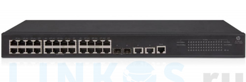 Управляемый коммутатор HPE OfficeConnect JG960A поддерживает логическое стекирование четырех коммутаторов серии HPE 1950 с балансировкой соединений посредством LACP (агрегирование ссылок) и управление ими как единым объектом: модули в стеке соединяются по 10-гигабитным каналам, обеспечивая общую пропускную способность 40 гигабит. Порты: 24 GE-порта RJ-45. Два 10-гигабитных порта RJ-45 с для подключения к сети по витой паре и стекирования. Два 10-гигабитных слота SFP+ для подключения к сети по оптико-волоконному кабелю (SFP-модули в комплект не входят) и стекирования. Консольный порт RJ-45 для ограниченного доступа к интерфейсу командной строки (CLI). Суммарная емкость маршрутизации/коммутации — 128 Гбит/с. Скорость передачи пакетов — 95.2 mpps. Размер таблицы маршрутизации — 32 записи (IPv4), 32 записи (IPv6). Размер таблицы МАС-адресов — 16К. Буфер памяти пакетов — 1.5 Мбайт, flash-память — 128 Мбайт, SDRAM — 1 Гбайт. Время задержки передачи кадра при 100 Мбит/с и 1000 Мбит/с — Функции 2-го и 3-го уровней: STP, RSTP, MSTP. Поддержка VLAN и тегирование — IEEE 802.1Q с 4094 одновременными идентификаторами. Статическая маршрутизация IPv4/IPv6 — до 32 статических маршрутов и 8 интерфейсов VLAN. DHCP Relay — упрощение управления DHCP-адресами в сетях с несколькими подсетями. Фильтрация ненужных пакетов BPDU. Поддержка протокола разрешения адресов (ARP) — определение MAC-адреса другого IP-хоста в той же подсети, детекция повторяющихся IP-адресов; обеспечение штатной работы ARP между подсетями. Управление Предусмотрено управление через веб-браузер (GUI), ограниченный интерфейс командной строки (CLI). Функции настройки и управления: RMON — дистанционный мониторинг сети. SNMPv1/v2c/v3 — сетевое управление с аутентификацией источника данных, шифрованием трафика, поддержанием целостности сообщений; возможность удаленного администрирования через платформы на базе SNMP. Управление потоком IEEE 802.3x. Поддержка IEEE 802.1AB: обнаружение устройств канального уровня (LLDP). IGMP/MLD Snooping — фильтрация многоадресного трафика, предотвращающая рассылку по всем портам; отслеживание IGMP в сетях IPv4, MLD Snooping — в IPv6. Режимы DHCP-клиента по умолчанию — автоматическое назначение IP-адреса нестандартному коммутатору при подключении к сети с DHCP-сервером в режиме Plug-and-Play. Зеркалирование портов. Поддержка резервного копирования ПО (Dual flash images) для сокращения времени простоя при обновлении. Ведение журнала сеанса. Поддержка протокола сетевого времени (NTP) для упрощения учета времени в сети и синхронизации работ и журналов. Удаленная диагностика подключенных кабелей. Безопасность ACL — списки контроля доступа в том числе для сетей IPv6. Управление доступом в сеть на основе портов для аутентификации через серверы RADIUS (IEEE 802.1x). Разрешение только авторизованного доступа к интерфейсу веб-браузера (пароль управления). Шифрование SSL — защита управления HTTP Secure (HTTPS), предотвращение отслеживания конфиденциальной информации (пароли). Защита от широковещательных, многоадресных или одноадресных штормов. Автоматическое назначение пользователей соответствующей VLAN на основе их личности, местоположения и времени суток. Изоляция порта для обеспечения конфиденциальности и безопасности данных без использования VLAN для изоляции хостов в VLAN друг от друга. Защита от ARP-атак блокировкой пакетов от неавторизованных клиентов, предотвращение атаки с подменой пользователей и шлюзов. Защита порта STP BPDU — 