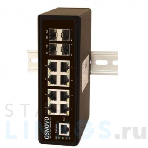 Промышленный управляемый коммутатор Osnovo SW-70804/IL оборудован восемью GE-портами RJ-45 и четырьмя GE SFP-слотами. SFP-модули в комплект не входят. Коммутационная способность матрицы — 24 Гбит/с. Скорость перенаправления пакетов — 1.488 mpps. Емкость MAC-таблицы — 8K адресов. Размер буфера пакетов — 4 Мбайт. Топологии подключения — каскад, звезда, кольцо. Jumbo-кадры — 9 кбайт. Управление и функциональность: Web-интерфейс, CLI (интерфейс командной строки), Telnet и консольный порт. SNMP v1/v2c — управление производительностью сети, аутентификации пользователей Тегирование трафика на принадлежность к VLAN, IEEE 802.1Q. IGMP Snooping v1/v2/v3 — контроль сетевого трафика, идентификация маршрутизаторов, групповые запросы при многоадресной передаче, фильтрация источников. Шифрование трафика: SSL — безопасный web, SSH v2.0 — защищенный сеанс Telnet. Защита от сетевого шторма. DHCP snooping — защита от атак с использованием протокола DHCP. Защита от перехвата трафика между узлами (от атаки ARP-spoofing). Отключение портов при повышении температуры выше заданной. Проверка кабеля, тестирование соединения посредством PING. Коммутатор поддерживает приоритизацию, контроль доступа к сети на основе портов по стандарту IEEE 802.1x и списков ACL (с ограничением пропускной способности), голосовой VLAN. Функции уровней 2 и 2+: STP, RSTP, MSTP. Контроль потока 802.3x. Агрегация каналов на основе LACP (802.3ad). Защита от сетевых петель (Loop Protection), в том числе при кольцевой топологии (протокол ERPS). Изоляция портов. Зеркалирование портов. SW-70804/IL поддерживает Auto MDI/MDIX (для RJ-45) — автоматическое определение типа подключенного устройства для работы с прямыми и перекрестными кабелями. Оснащен клеммными колодками для подключения основного и резервного блока питания, винтовой клеммой заземления. Предусмотрены LED-индикаторы скорости передачи через RJ-45, подключения основного и резервного блоков питания, скорости 100 Мбит/с и 1000 Мбит/с, подключения оборудования к SFP-слотам, ошибки. Основное и резервное питание — DC 12 ~ 55 В (БП в комплект не входят). Потребляемая мощность — менее 15 Вт. Рабочие температуры — –40 °C... +75 °C. Защита от пыли и влаги — IP40, грозозащита — 6 кВ. Монтаж — на DIN-рейку (крепления в комплекте). Размер — 53.5×165×123 мм.
