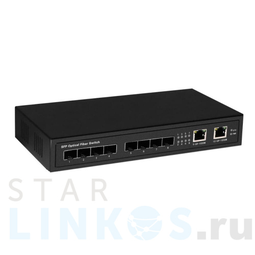 8 GE SFP, 2 GE RJ-45 Матрица 32 Гбит/с МАС-таблица 8К Буфер пакетов 4.1 Мбайт MDI/MDIX (Auto Negotiation)