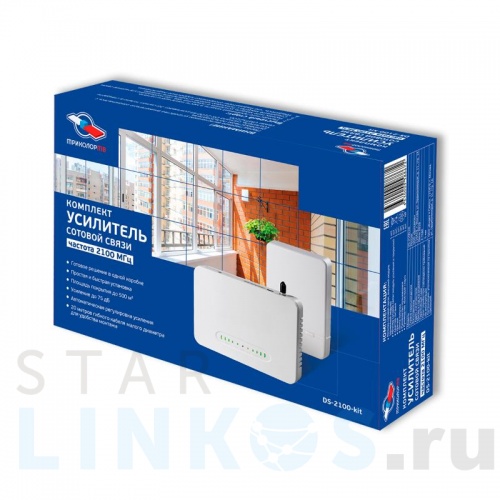 Комплект для усиления сигнала сотовой связи DS-2100-kit предназначен для улучшения качества 3G-сигнала сотовой связи стандарта UMTS2100. Приемный модуль, установленный на улице, балконе или лоджии, передает сигнал по кабелю на модуль усиления и покрытия. Слабый сигнал с улицы усиливается и распространяется внутри помещения. Внимание! Усилитель сигнала DS-2100-kit усиливает 3G-сигнал только в стандарте UMTS2100. Не предназначен для помещений площадью более 500 м².