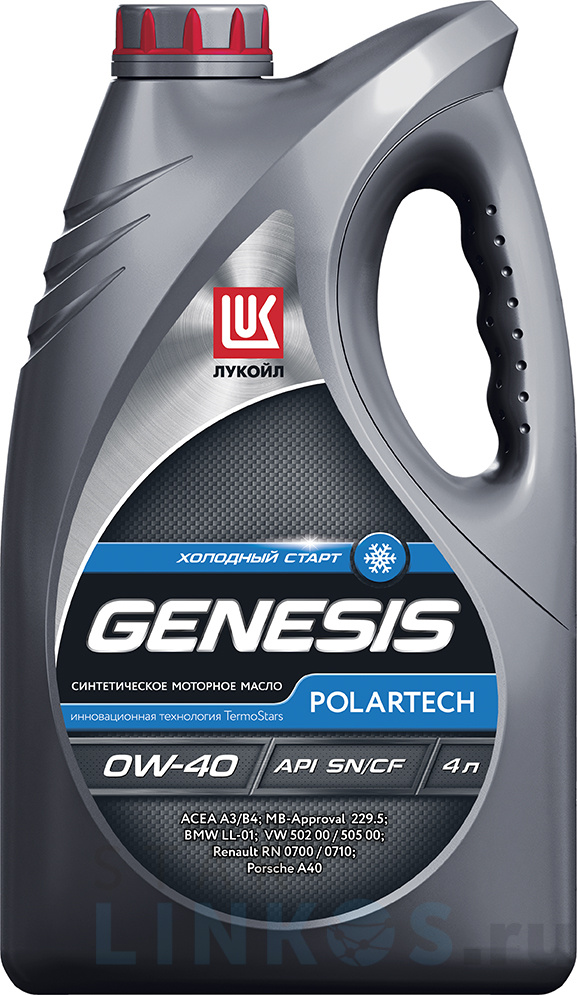 LUKOIL GENESIS POLARTECH 0w 40 API SN/CF 4 л. – это моторное масло синтетическое всесезонное, последнего поколения. Сфера использование – современный легковой и грузовой автомобильный транспорт, а также микроавтобусы.