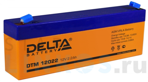 Аккумулятор DTM 12022, Delta, герметичный свинцово-кислотный, Емкость аккумулятора: 2.2 Ач, Номинальное напряжение: 12 В, Заряд: -10÷60°C, Разряд: -20÷60°C, Размеры: 178х35х61мм