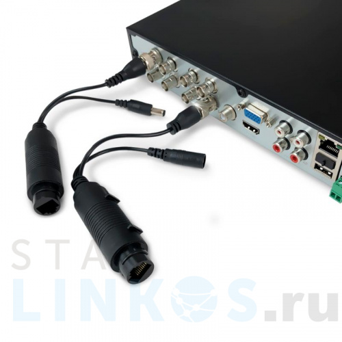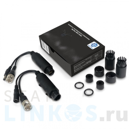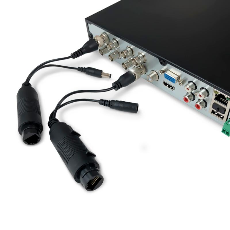 Комплект позволяет организовать передачу питания и данных по витой паре в системе аналогового видеонаблюдения