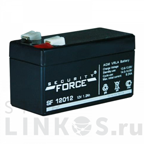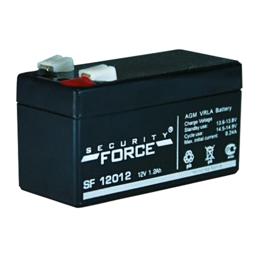 Аккумулятор SF 12012, Security Force, стационарный свинцово-кислотный, Емкость аккумулятора: 1,2 Ач, Номинальное напряжение: 12 В, Хранение: -20...+50°C, Заряд: -10...+50°C, Разряд: -15...+50°C, Размеры: 97х43х58 мм