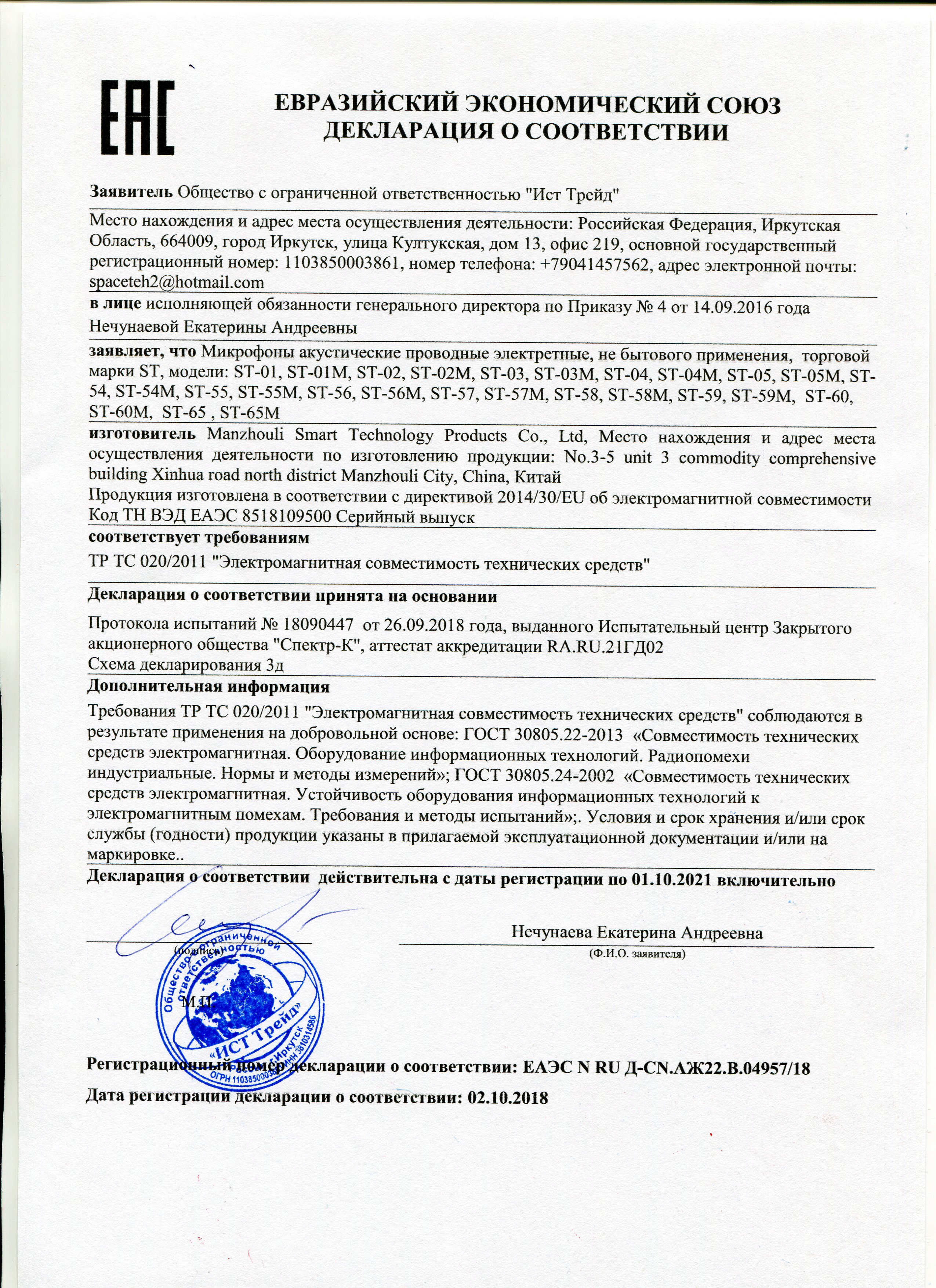 Купить с доставкой Микрофон ST-65 (Waterproof) в Туле