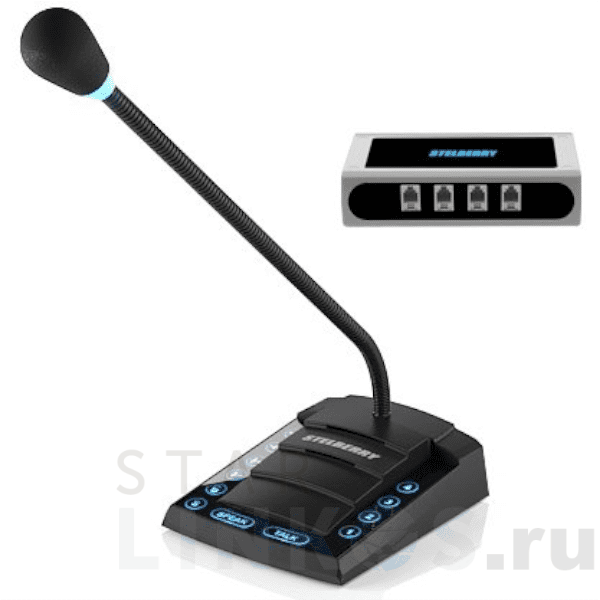 Переговорное устройство STELBERRY S-740 предназначено для ведения селекторных переговоров на расстоянии до 1 км по кабелю. Пульт оператора соединяется с 4-канальным коммутатором, включенным в комплект поставки. К коммутатору можно подключить до четырех панелей S-130 с встроенным реле и кнопкой «Вызов» (в комплект не входят), до четырех пультов D-120 (в комплект не входят) или их комбинацию. Преимущество комплекта — автоматическое сохранение чувствительности и громкости для каждого канала: панели абонентов могут размещаться в местах с разным уровнем шума, а индивидуальные настройки всех каналов позволяют наладить одинаковый сигнал для всех панелей. Функционал устройства включает управление встроенными в абонентские панели реле для разблокировки замка, режим «Симплекс», используемый при значительных шумовых нагрузках в местах установки панелей, функцию громкого оповещения, реализованную подключением к любому трансляционному усилителю на линейный вход. Пульт оператора Клавиши связи с абонентами позволяют включить/отключить двустороннюю связь с любой подключенной панелью. При нажатии кнопки «Вызов» на S-130 соответствующая клавиша на пульте начинает мигать. Для активации режима громкого оповещения предусмотрена кнопка «TALK». Для активации и управления режимом «Симплекс» предусмотрены кнопки S и «SPEAK». Кнопка разблокировки замка замыкает реле панели, с которой поступил запрос. Настройка громкости и чувствительности — сенсорными кнопками, 16 уровней. Гибкая стойка микрофона для удобства работы. Микрофон обеспечивает внятность речи даже при удалении оператора от пульта. Кнопка отключения микрофона позволяет вести конфиденциальные служебные разговоры. Выходы: для коммутатора, для записей переговоров на аудиорегистратор, для громкого оповещения, для подключения БП. Комплектация S-740 включает соединительные кабели и блоки питания для пульта и коммутатора — 12 В, 350 мА. Линия связи — 4-проводная, дальностью c кабелем КСПВГ 4×0.12 до 350 м, c кабелем КСПВГ 4×0.35 до 1000 м. Мощность пульта — по 1.0 Вт. Габарит пульта — 120×140×40 мм, коммутатора — 130×75×30 мм, вес устройства в упаковке — 1 кг, рабочие температуры — 0 °С... +50 °С.