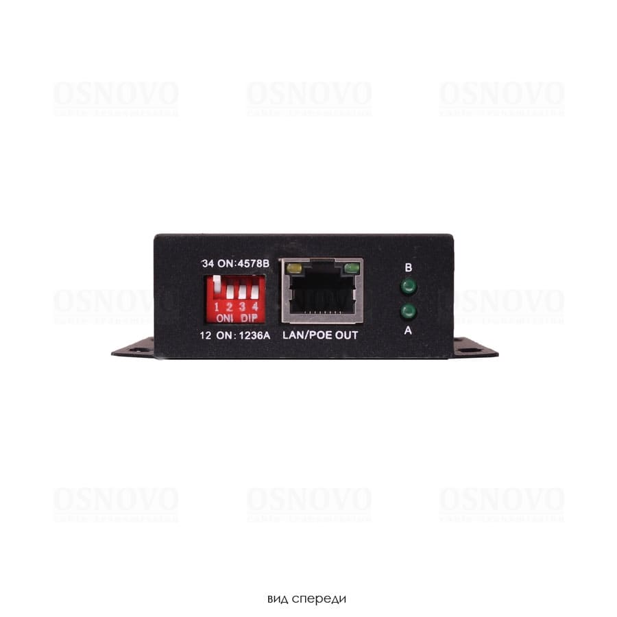 PoE-удлинитель Osnovo E-PoE/1A оснащен двумя портами RJ-45 (вход/выход) с поддержкой РоЕ. Увеличивает расстояние передачи данных и питания по витой паре Cat5e или Cat6 до 150 м на 100 Мбит/с, до 250 м — на 10 Мбит/с. Мощность РоЕ на входе — 30 Вт. Мощность на выходе при передаче на 100 м — 24 Вт, на 250 м (в режиме Super) — 18 Вт, на 250 м (при каскадном подключении двух удлинителей) — 21 Вт. Функциональность: Поддержка стандартов РоЕ IEEE 802.3af, IEEE 802.3at. Управление — полный дуплекс (IEEE 802.3x). MDI/MDIX — автоматическое определение (Auto Negotiation) типа подключенного устройства для работы с кроссовыми и прямыми кабелями. Выбор метода подачи PoE выходным портом — А или В. Защита от превышения предельного тока нагрузки. Защита от короткого замыкания с автовосстановлением подачи РоЕ при устранении КЗ. Поддержка «горячего подключения». Грозозащита 3 кВ (8/20 мкс). E-PoE/1A оснащен светодиодными индикаторами питания, включения режима Super, выбора метода РоЕ, подачи РоЕ, Link. Получает питание от PoE-коммутатора (инжектора) или от блока питания (в комплект не входит). Рабочие температуры — -10 ºС... +55 ºС. Защита от пыли и влаги — IP30. Предусмотрен монтаж на плоскую поверхность. Размер — 88×25×60 мм.