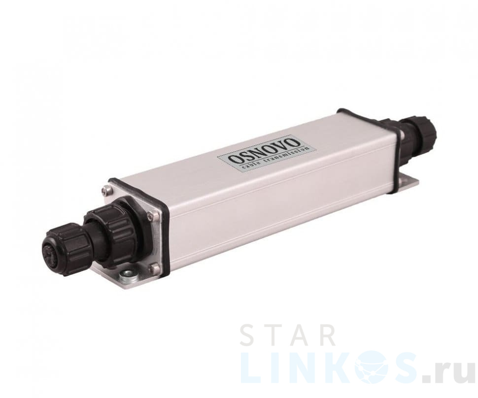 PoE-удлинитель Osnovo E-PoE/2W поставляется в алюминиевом корпусе с защитой от пыли и влаги по стандарту IP65, диапазон рабочих температур — -40 ºС... +75 ºС, предусмотрены гермовводы и грозозащита 6 кВ. Увеличивает расстояние передачи данных и питания (22 Вт) по кабелю витой пары на 100 м, поддерживает автоматическое определение РоЕ-устройств, стандарты РоЕ IEEE802.3af, IEEE802.3at, каскадное подключение до четырех удлинителей. Передача мощности при каскадном подключении устройств: Двух — до 12 Вт на общее расстояние до 300 м. Трех — до 6 Вт на общее расстояние до 400 м. Четырех — до 4 Вт на общее расстояние до 500 м. E-PoE/2W получает питание по PoE. Потребление — 1.2 Вт. Порты — два FE RJ-45, передача данных — полудуплекс, полный дуплекс. Рассчитан на настенный монтаж, предусмотрено соединение для кабеля заземления. Габариты — 220×48×38 мм.
