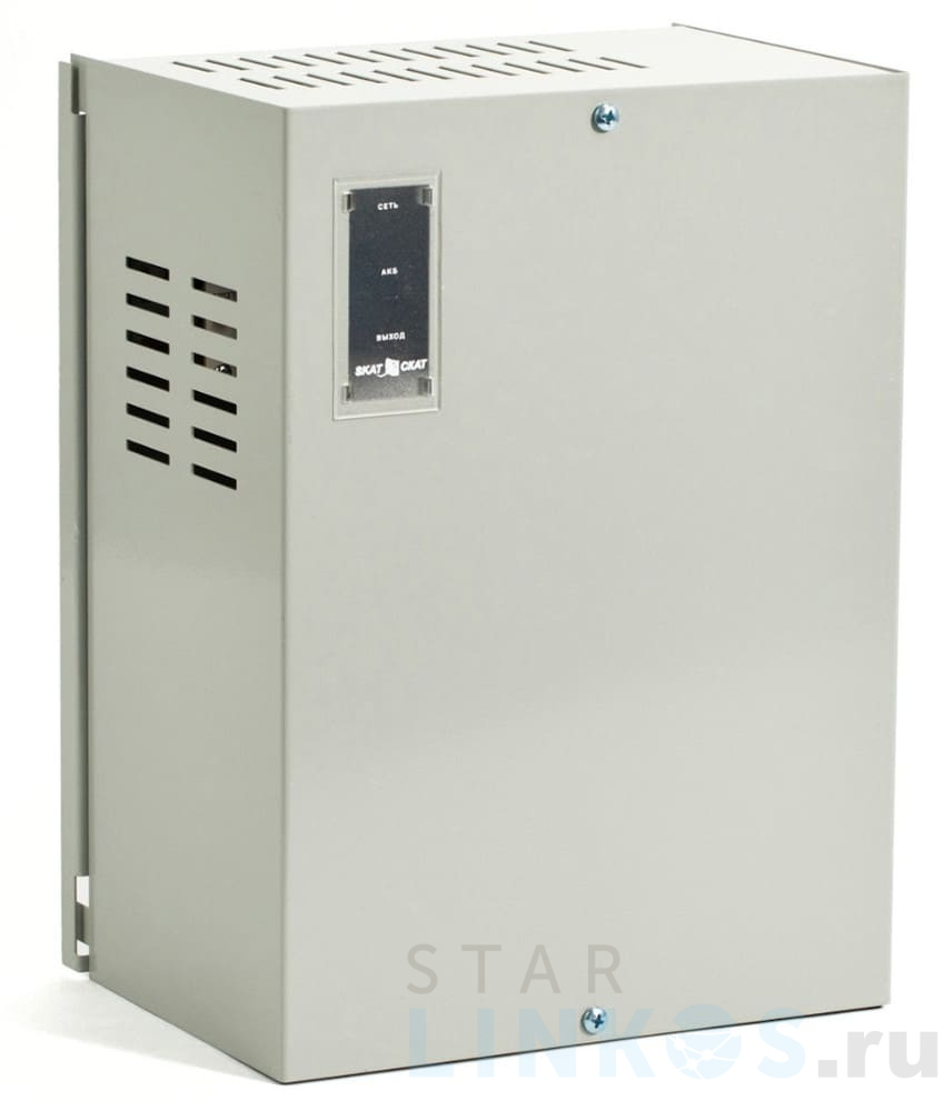 Резервированный источник вторичного питания «Бастион «Рапан» 100 исп.V.8 оборудован восемью выходами с номинальным напряжением 12 В DC и током по 0.5 А на каждый канал, дополнительным выходом на 12 В и током 4 А. Поддерживает объединение каналов для выходов по 0.5 А. Максимальный суммарный ток по девяти выходам и заряду АКБ — 10 А. Максимальная потребляемая от сети мощность — 30 ВА. Функциональность: Основной режим — от сети при напряжении в диапазоне 150 В ~ 250 В AC. Резервный режим — от аккумуляторных батарей при отсутствии сетевого напряжения. Диапазон выходного напряжения в основном режиме — 13.5 В ~ 13.9 В, в резервном — 10 В ~ 12.5 В. Защита от переполюсовки клемм АКБ. Защита от короткого замыкания в нагрузке. Поканальная защита по току (самовосстанавливающимися предохранителями). Защита батареи от глубокой разрядки отключением нагрузки при 10.5 В ~ 11.0 В на клеммах АКБ. Внутренняя индикация состояния сети, общего выхода и отдельно выходов по 0.5 А. В корпусе «Рапан» 100 исп.V.8 предусмотрено место для герметичного свинцово-кислотного аккумулятора с напряжением 12 В и емкостью 26 А·ч (в комплект не включен). Ток заряда АКБ — 2 А. Источник оснащен клеммами для подключения сети, нагрузки и батареи, предохранителем АКБ (15 А). Рабочие температуры — 0 ºС… +40 ºС. Настенный монтаж. Размер — 210×285×150 мм, вес — 2.25 кг. В комплект входят две аккумуляторные перемычки.