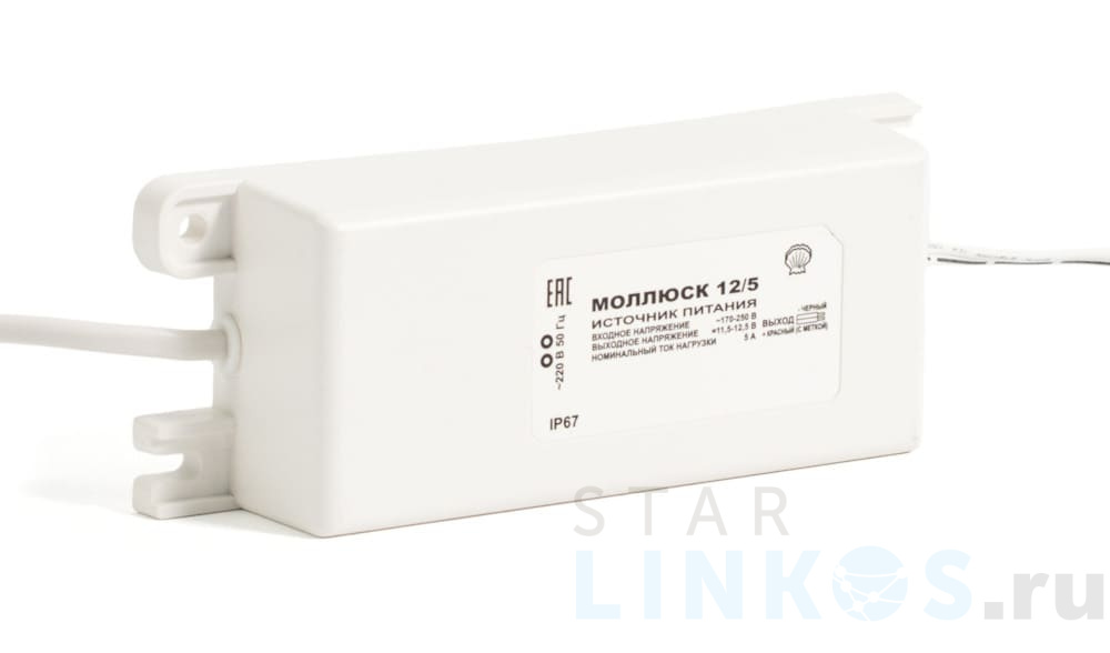 Блок питания «Бастион «Моллюск» 12/5 рассчитан на уличную эксплуатацию вне зависимости от времени года: соответствует стандарту защиты от пыли и влаги IP67, повышенному классу защиты от поражения электрическим током, рабочие температуры — –30 ºС… +40 ºС. Подает постоянный ток номинальным напряжением 12 В. Характеристики: Диапазон напряжения сети — 170 В ~ 250 В. Напряжение на выходе — 11.5 В ~ 12.5 В. Максимальный ток нагрузки — 5 А. Электронная защита от перегрузки по току, короткого замыкания. Диэлектрическая прочность изоляции — 3 кВ. Потребляемая мощность (без нагрузки) — 6 ВА. «Моллюск» 12/5 оборудован светодиодным индикатором работы, проушинами и отверстиями под крепеж для удобства монтажа. Размер — 56×150×35 мм. Вес — 350 г.